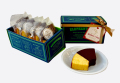 1/4にカットしたバウムクーヘンにチョコレートを半分ディップいたしました。